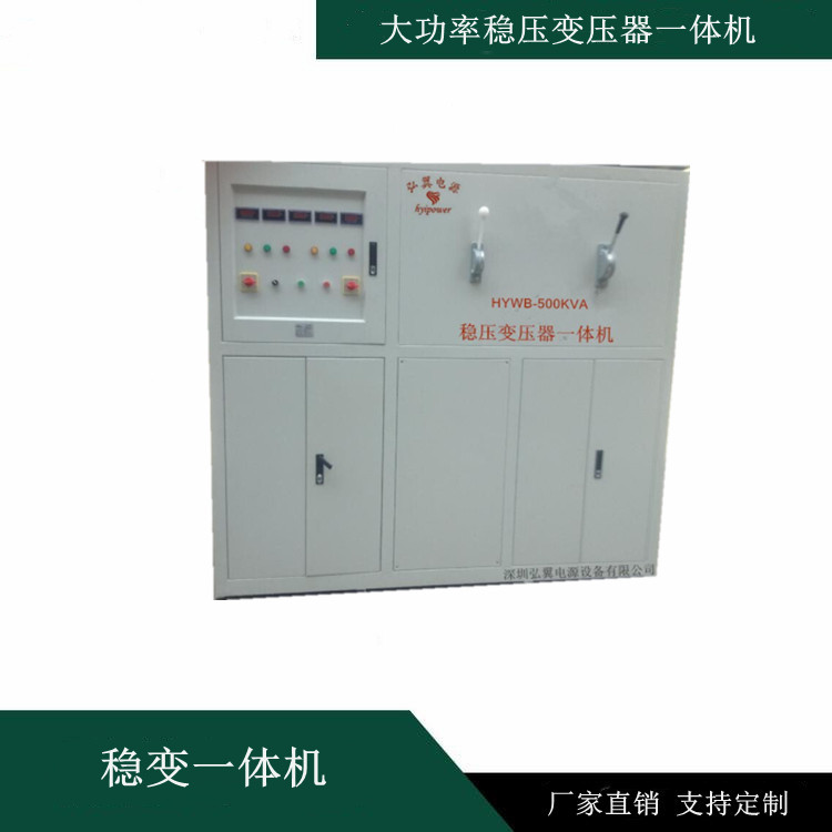 HYWB-500KVA稳变压器一体机,是为了实现400KW以下大功率用电设备的电压转换及稳定而专门设计的一款电源,其主要是由一台500KVA的大功率补偿稳压器以及一台500KVA的大功率变压器组合而成,主要应用于需要变压及电压转换功能的领域,即国外的机器设备比较多。